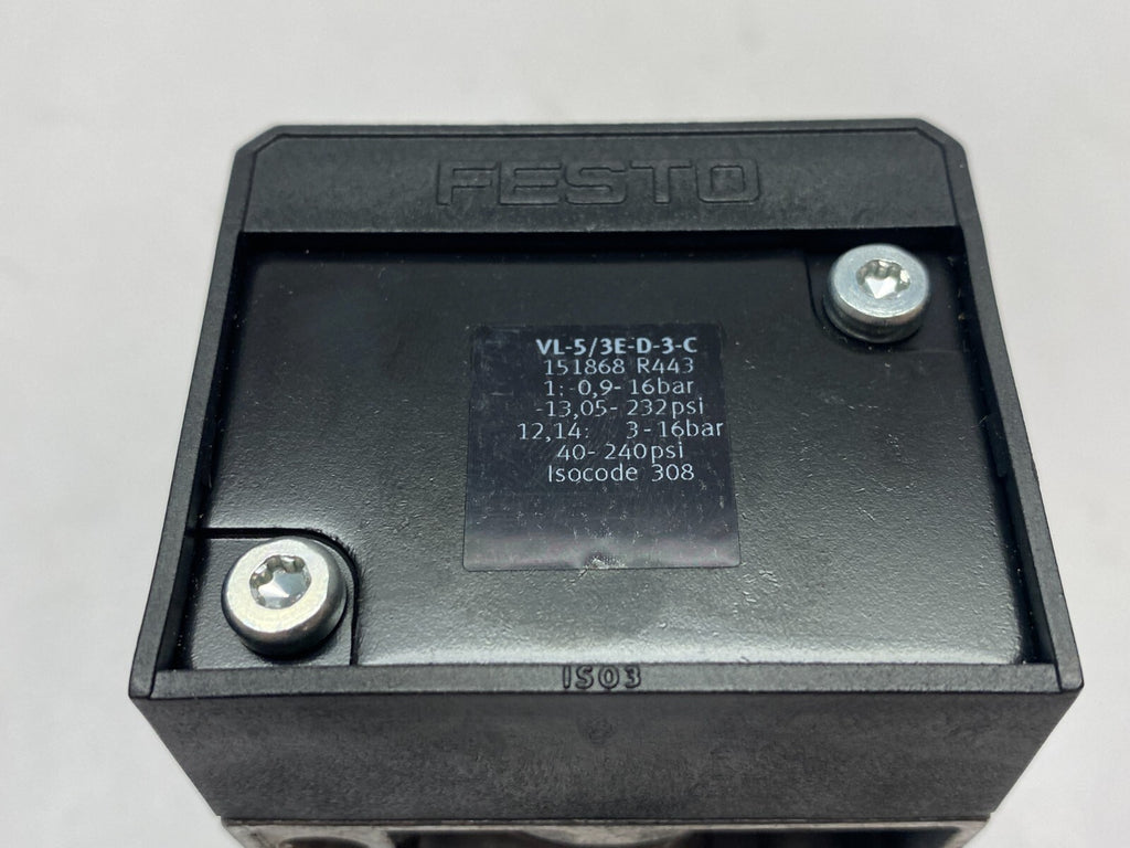 Festo VL-5/3E-D-3-C Sub-Base Pneumatic Valve 5/3 Exhausted 151868