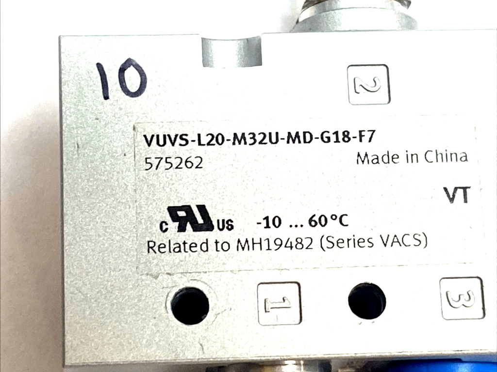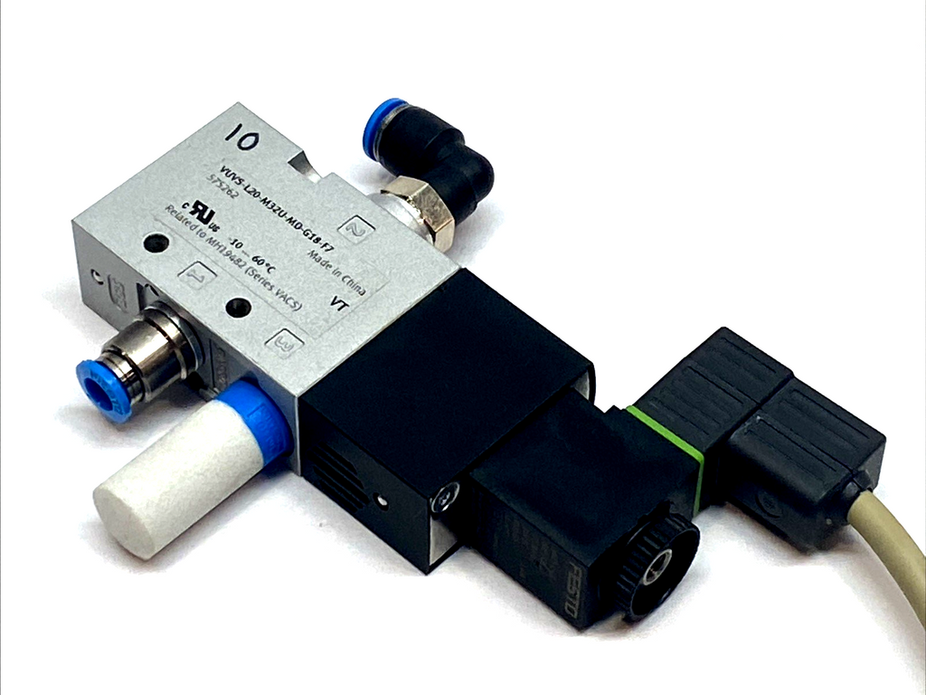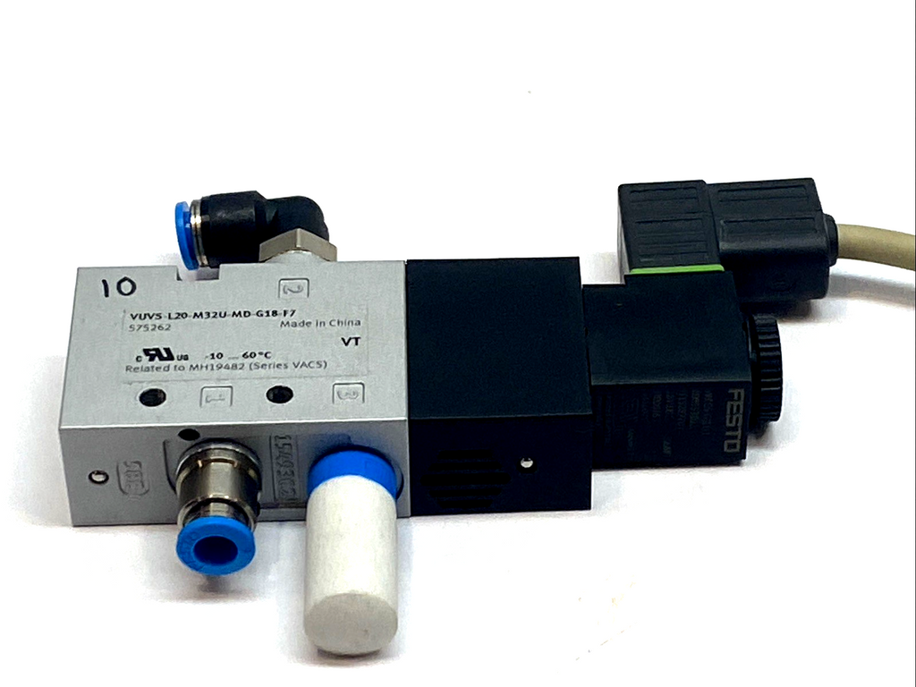 Festo VUVS-L20-M32U-MD-G18-F7 Solenoid Valve 575262 w/ VACS-C-C1-1 Coil 8025330