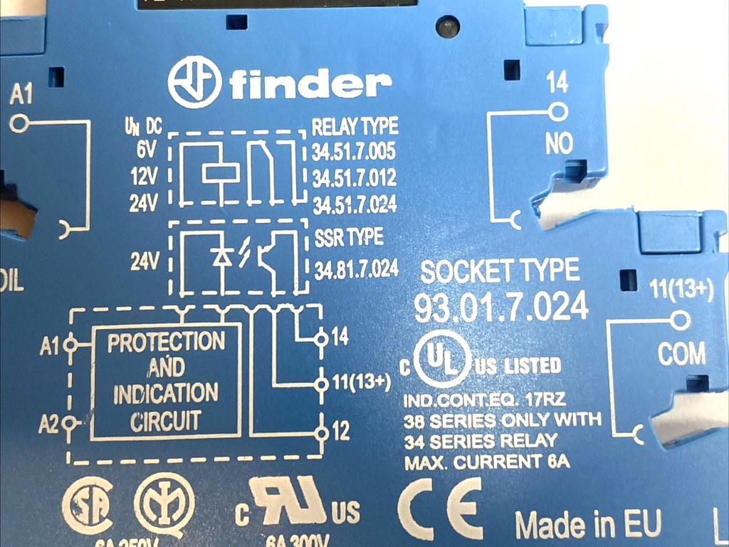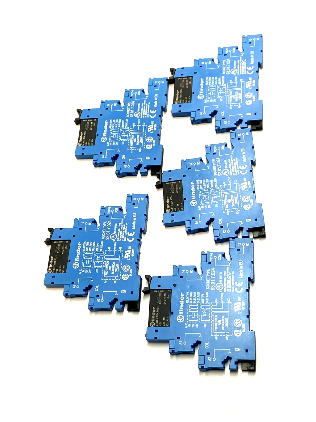 93.01.7.024 | Finder DIN Rail Relay Socket 6A 250V Screw Terminals LOT OF 5 - Used