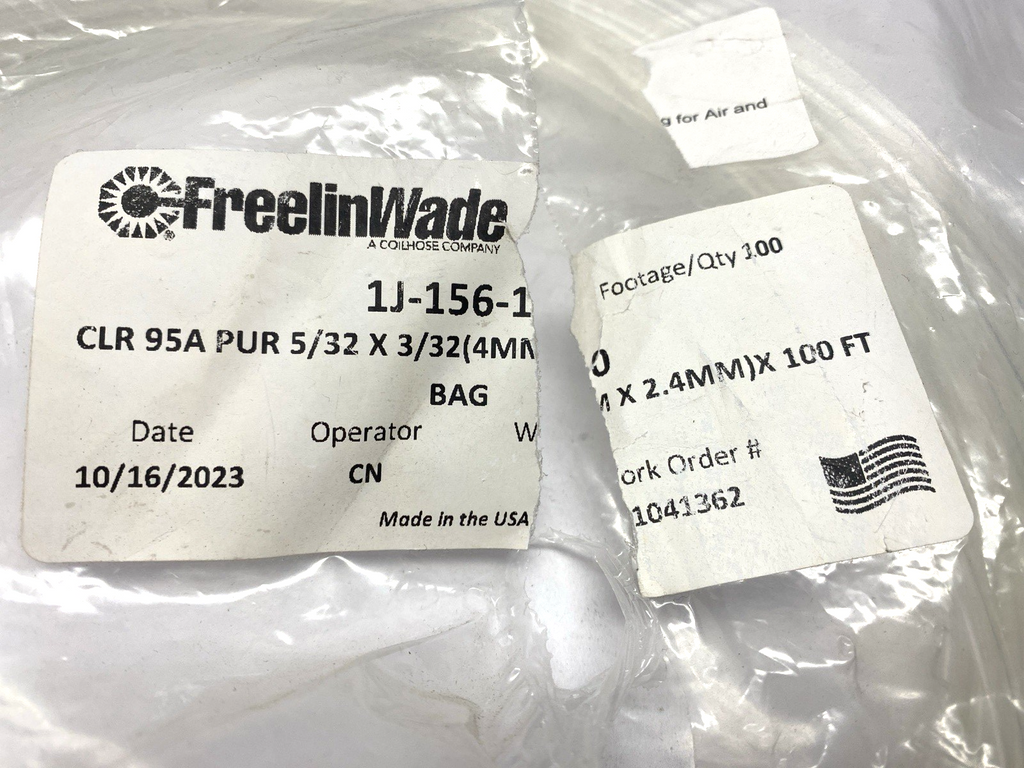 Freelin Wade 1J-156-1 Clear Tubing 95A PUR 4mm x 2.4mm 100' Length