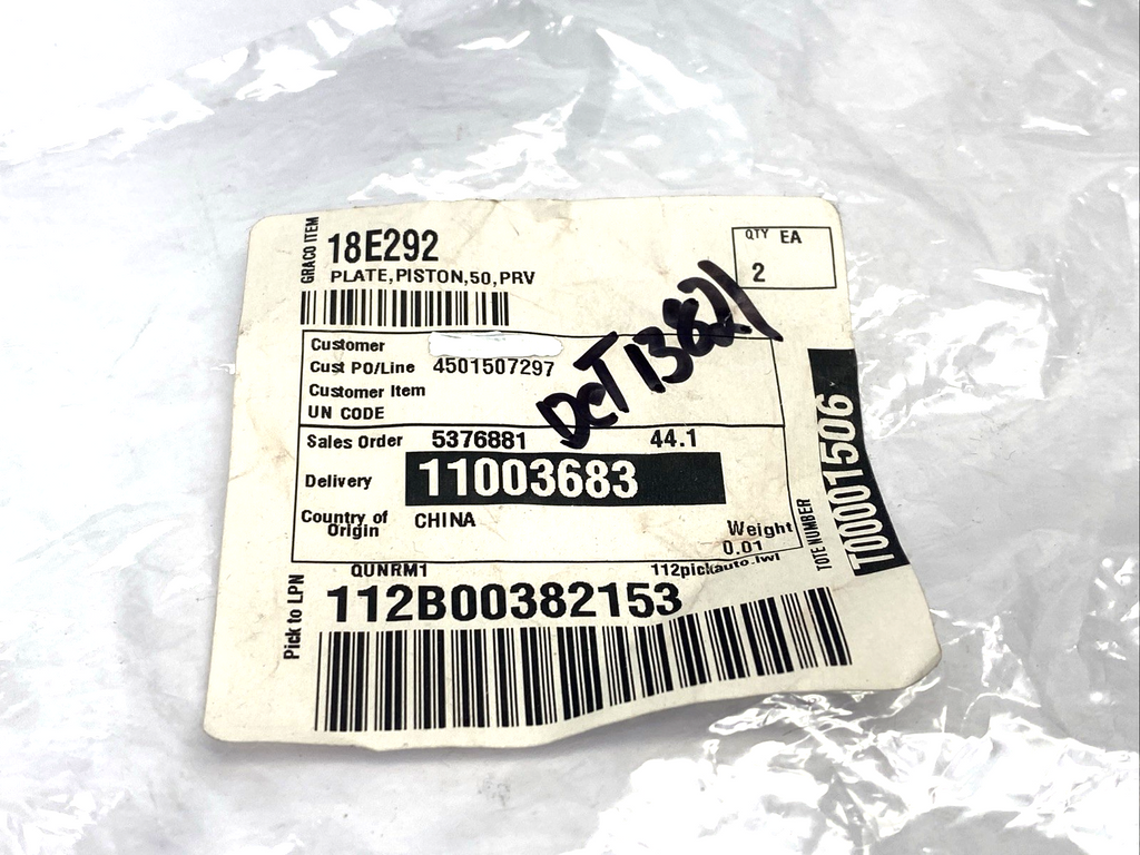 Graco 1.8E+293 Plate, Piston, 50 PRXV MAL 18E292 LOT OF 2