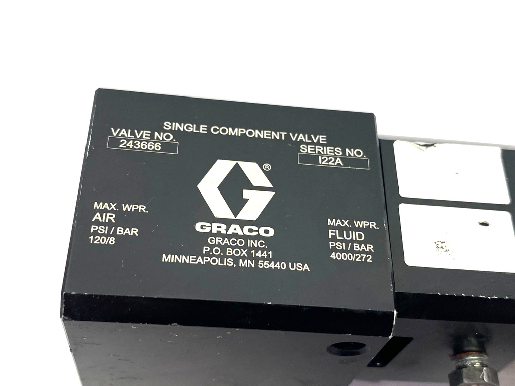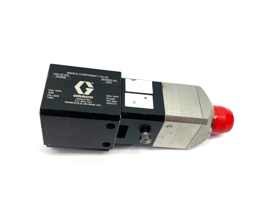 243666 | Graco Ultra-Lite 1K Single Component Dispense Valve, 45 Degree Connection - Used