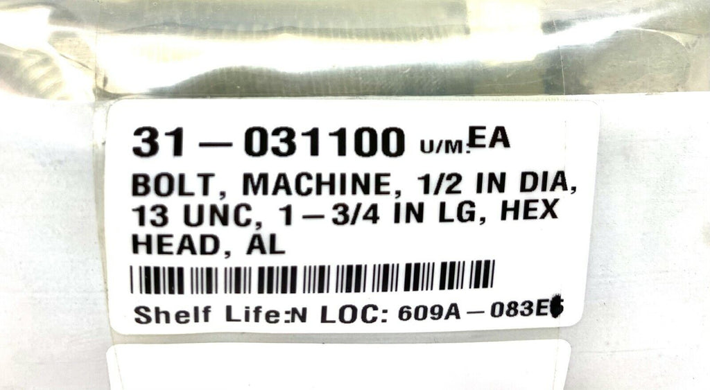 Hex Head Bolt Aluminum 1/2-13" x 1-3/4" Length LOT OF 4