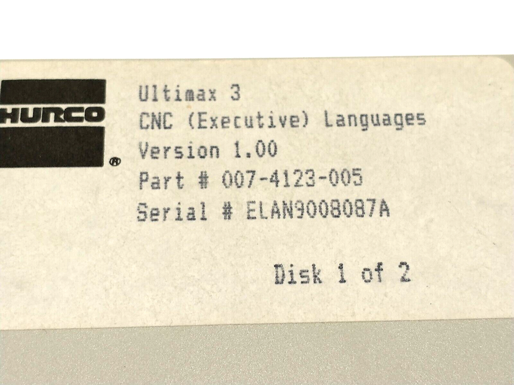 Hurco 007-4123-005 Ver. 1.0 Ultimax 3 CNC Executive Languages Floppy Disc 1 of 2 - Used
