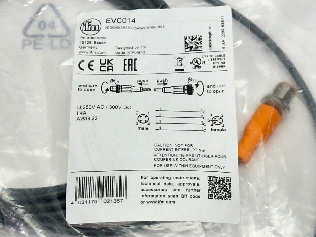 ifm EVC014 Connection Cable M/F M12 5m VDOGH040MSS0005H04STGH040MSS