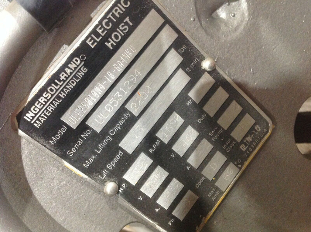 Ingersoll Rand ULE2S010M4-10-8A4NKU Hoist with Driven Trolley 1 Ton ULE Ultra-Lo