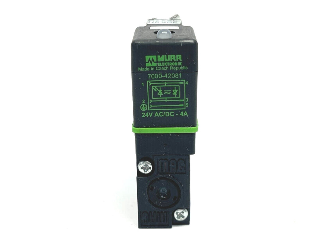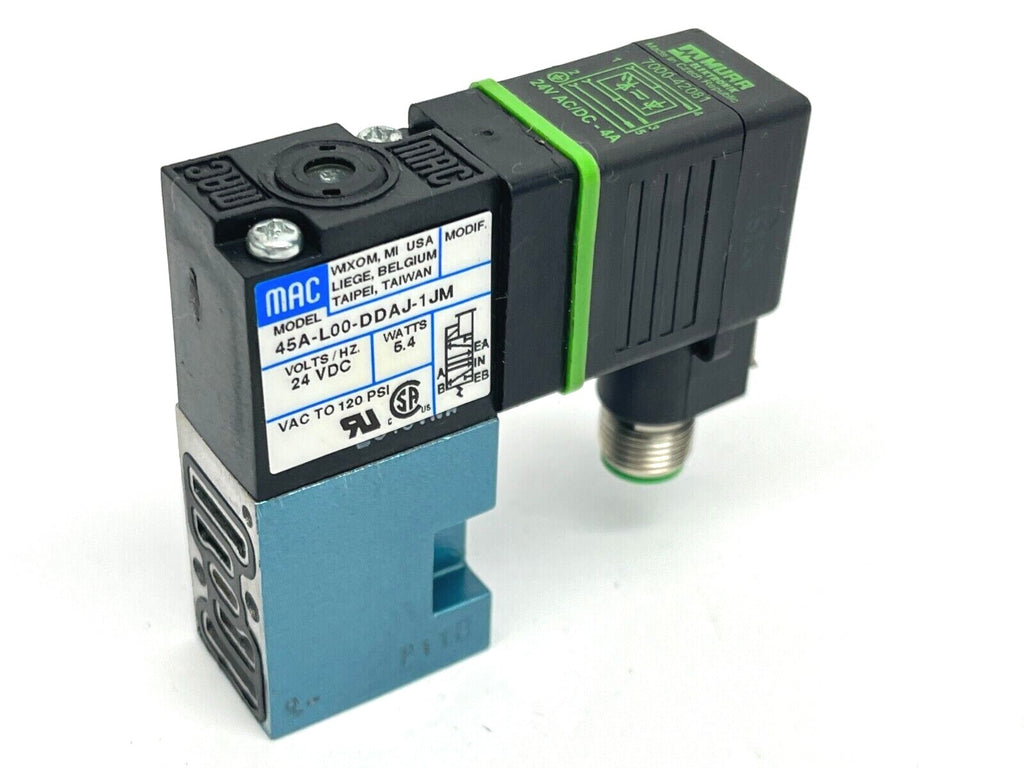 45A-L00-DDAJ-1JM | Mac Valves Solenoid Valve 24VDC w/ MURR 7000-42081 Connector - Used