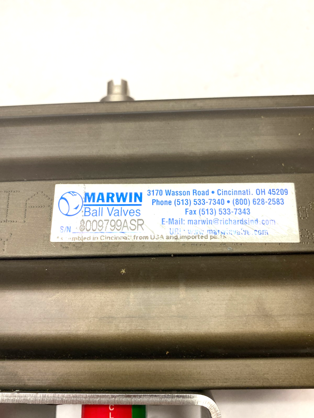 Marwin UT Series Pneumatic Ball Valve Actuator Assembly 1-1/2" 3-Way