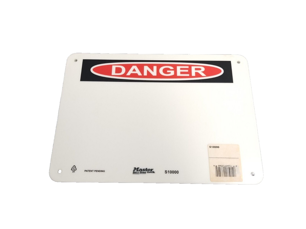 S10000 | Master Lock DANGER Safety Sign, White Polypropylene 10"x 7" - New – Open box