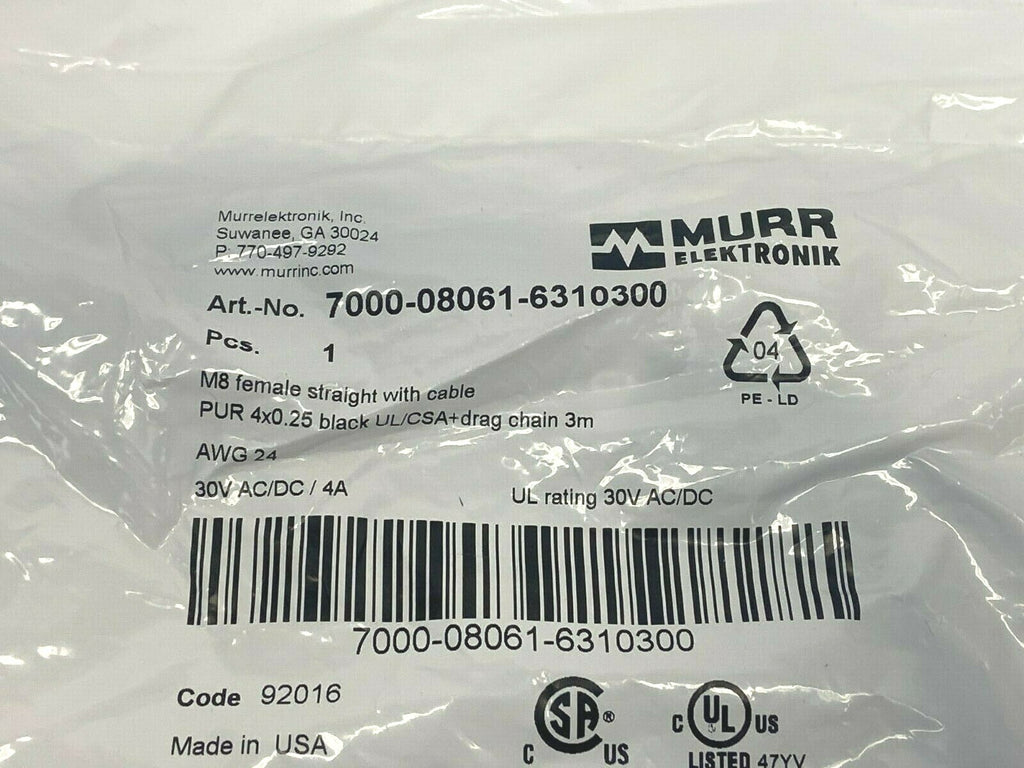 Murr Elektronik 7000-08061-6310300 Single-Ended M8 Cordset 3 Meter