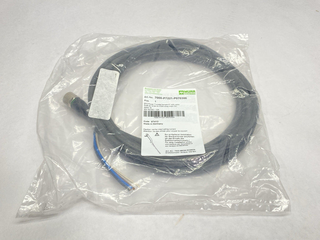 7000-P7221-P070300 | Murr Elektronik Female M12 Power Connector With Cable 3m - New