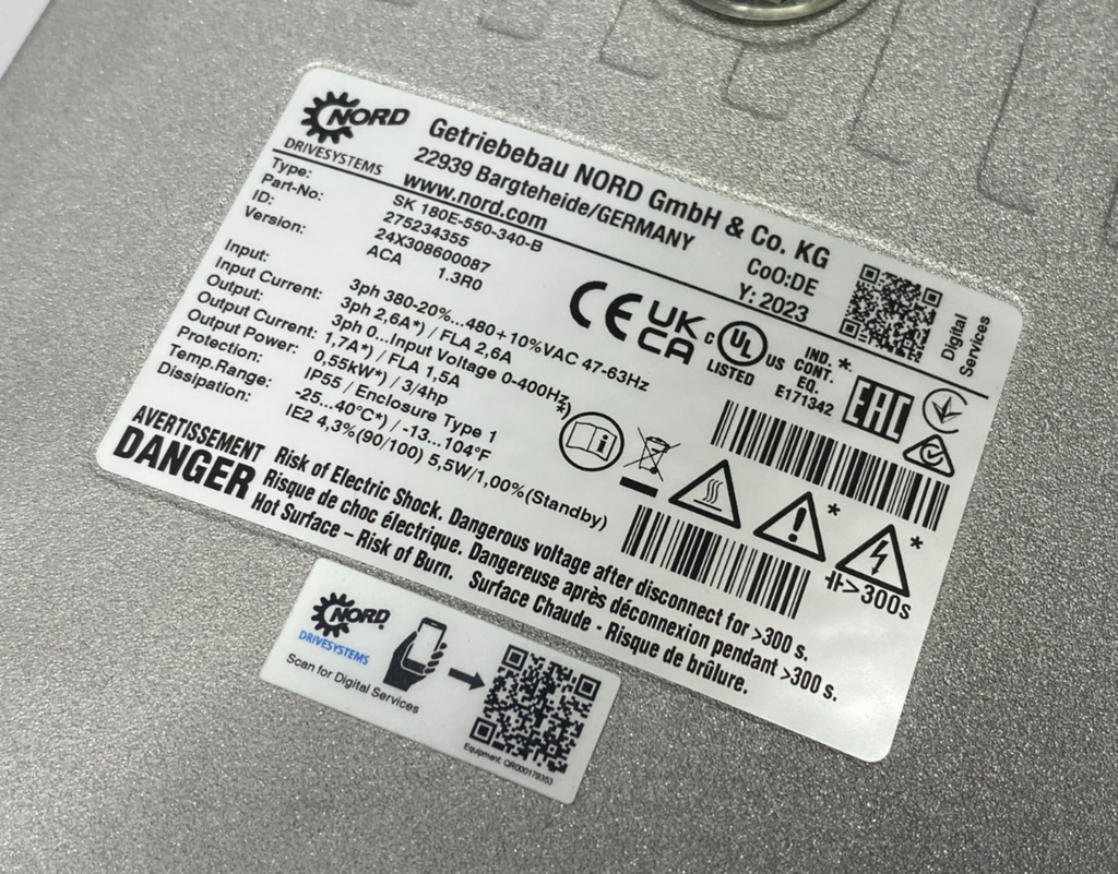 SK 180E-550-340-B | Nord Sk80Sp/4 Tf Motor, 02F-80Sp/4 Tf 180E Gear, Nordac Compact Drive - New – Open box