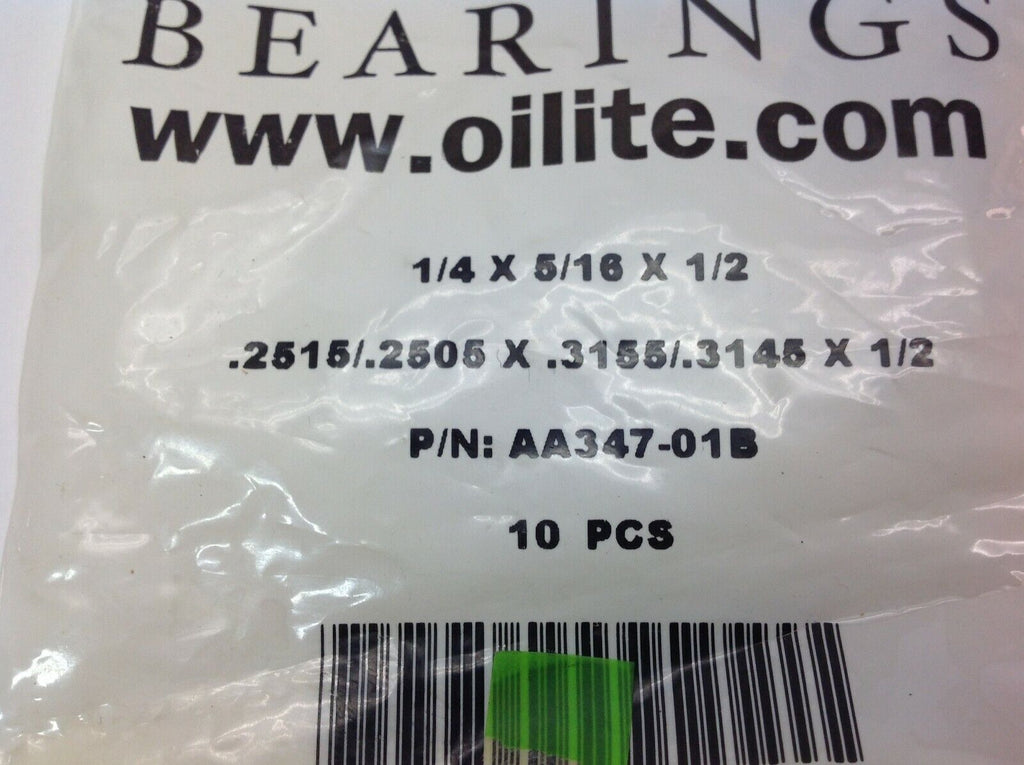 Ollite AA347-01B .2515", .3155", 1/2" Bronze Sleeve Bearing PK. OF 10