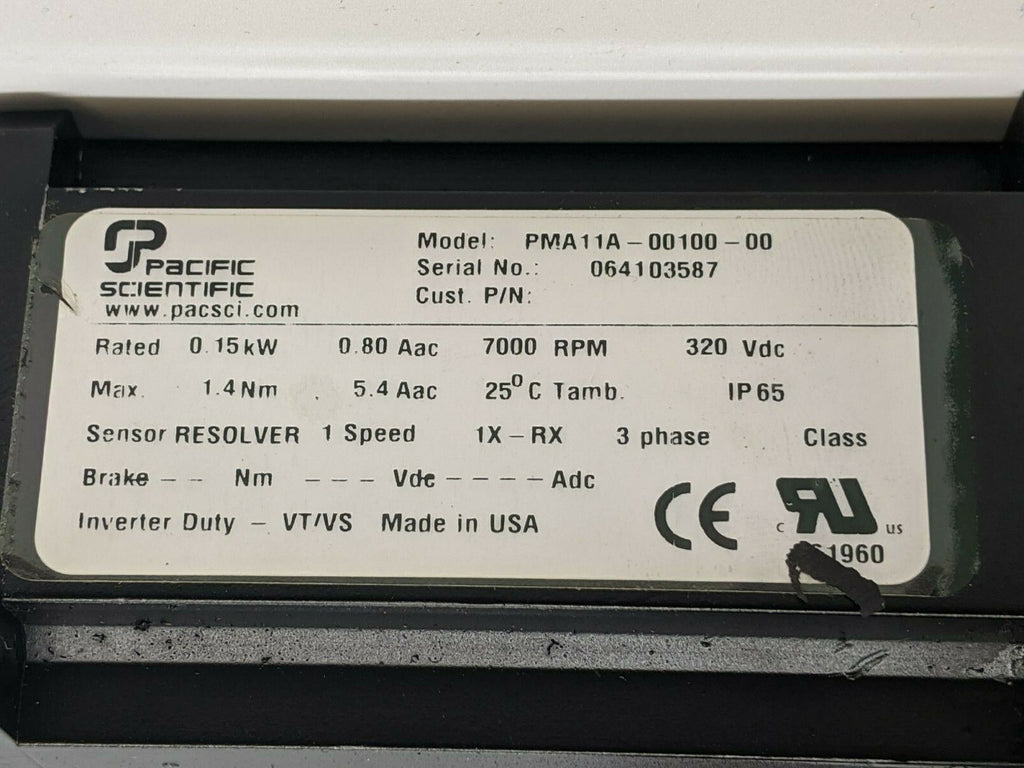 Pacific Scientific PMA11A-00100-00 Servo Motor 7000 RPM 320 Vdc