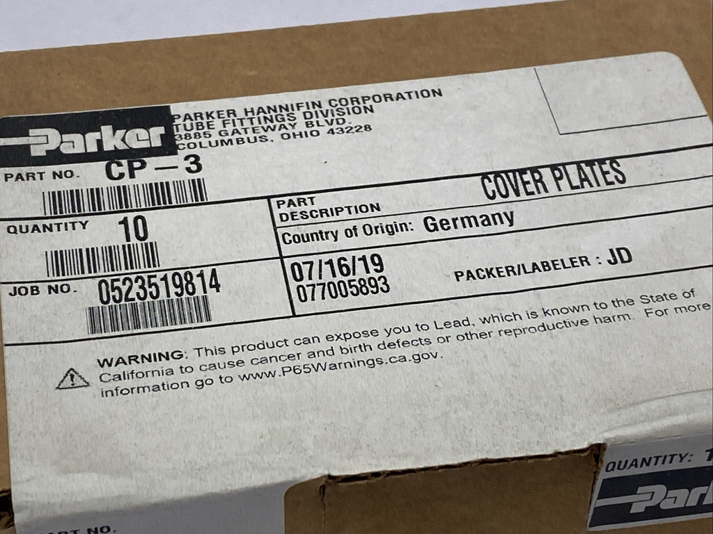 Parker CP-3 Inch Tube And Hose Clamp Cover Plates PKG OF 10