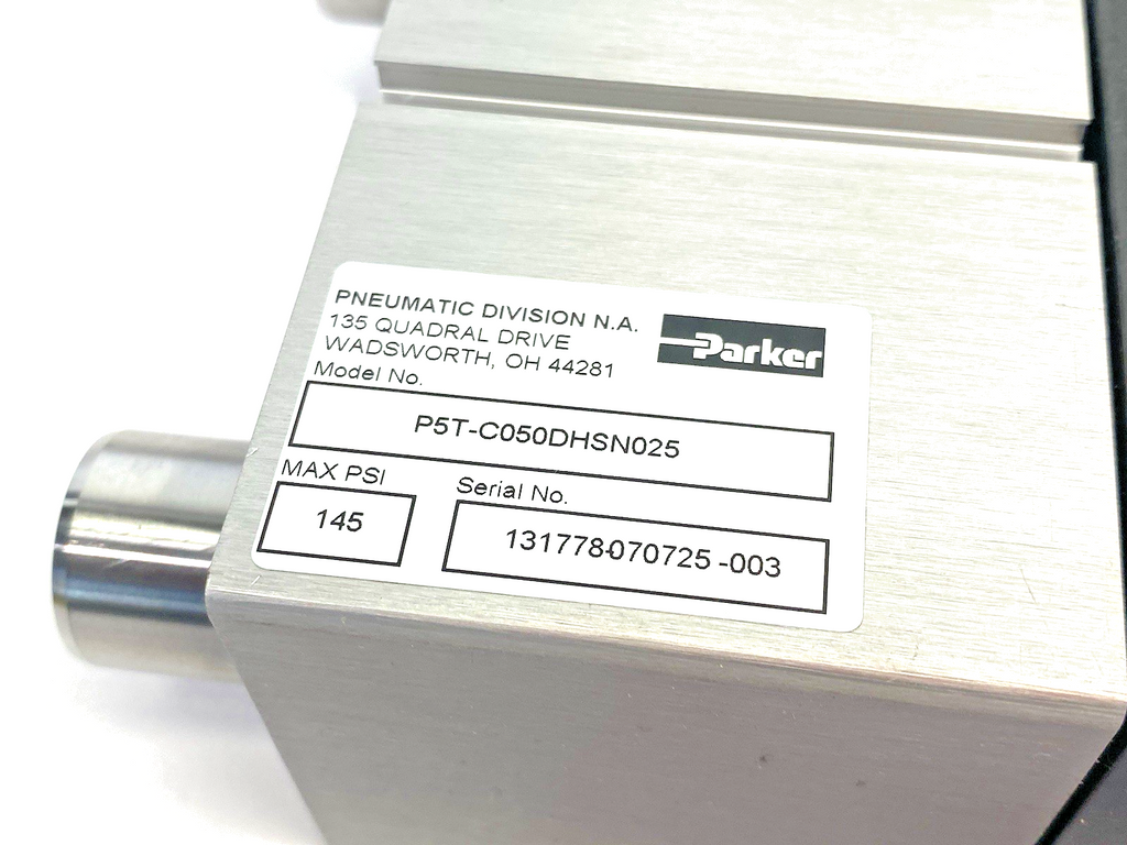 P5T-C050DHSN025 | Parker Pneumatic Guided Slide Cylinder, 50mm Bore, 25mm Stroke - New – Open box