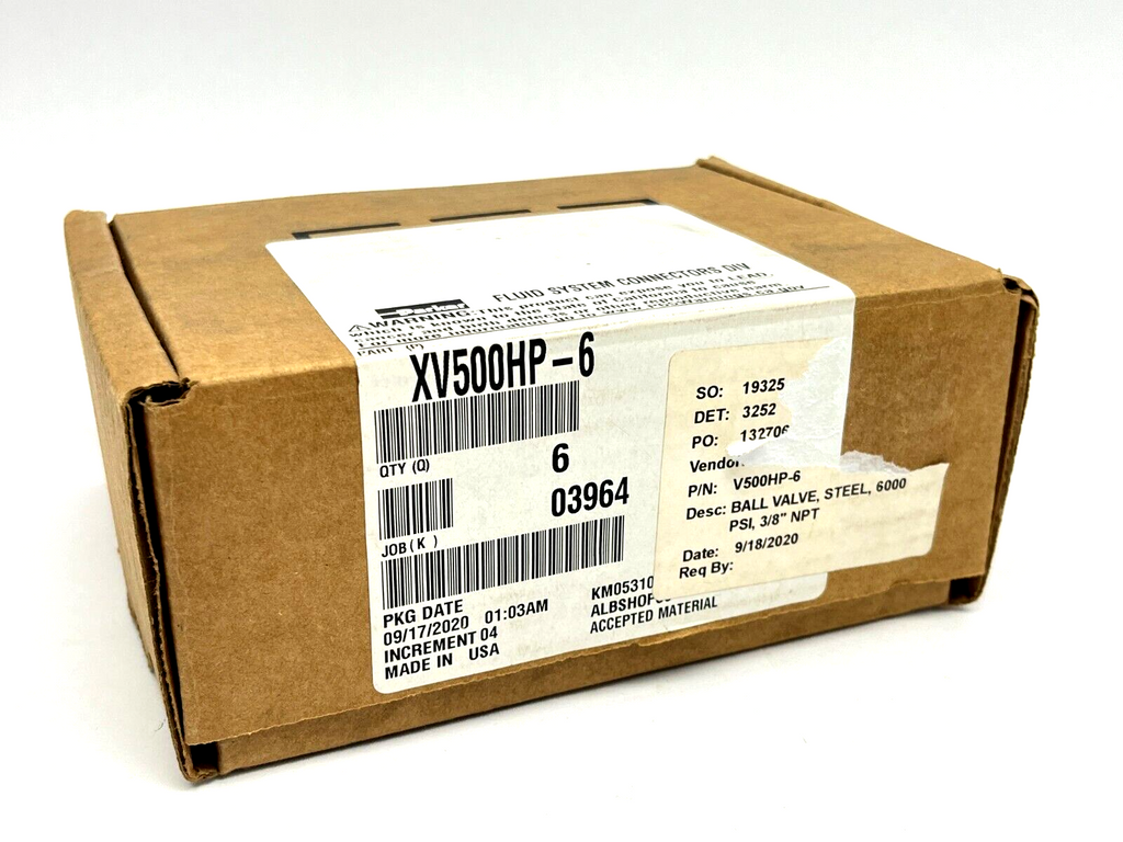 Parker XV500HP-6 Ball Valve 3/8" 7500PSI Steel