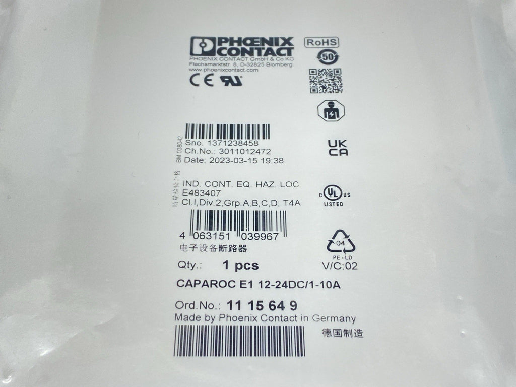 CAPAROC E1 12-24DC/1-10A | Phoenix Contact Electronic Circuit Breaker 1115649 - New
