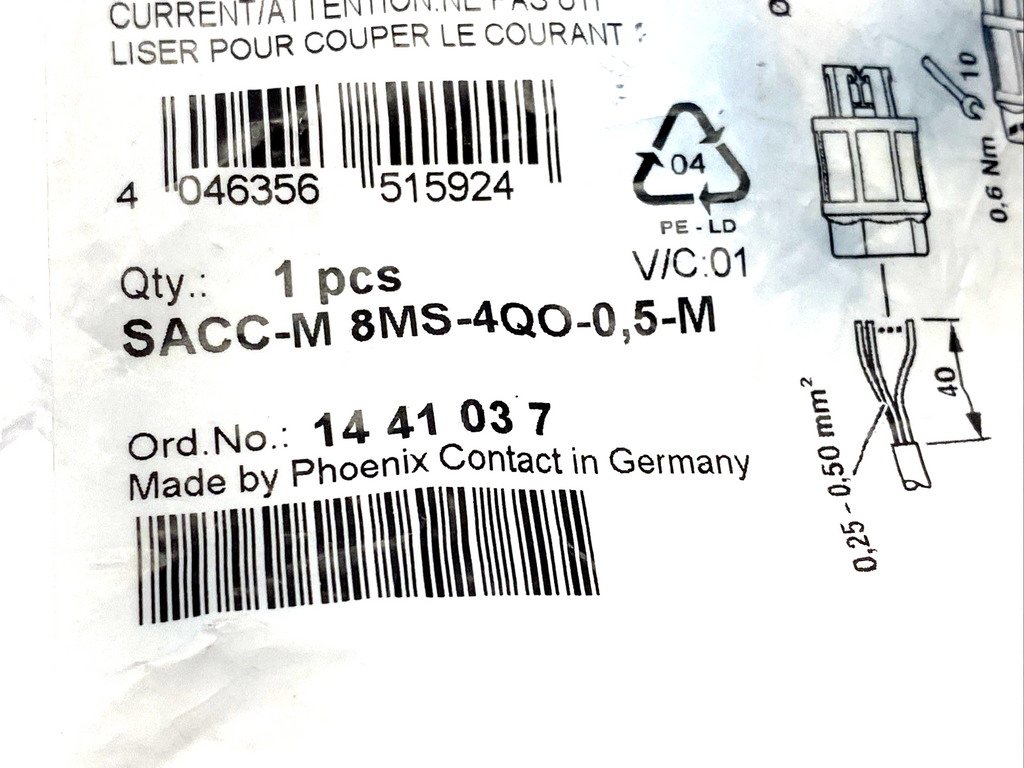 Phoenix Contact SACC-M 8MS-4QO-0,5-M Connector M8 4-Pin Male 1441037