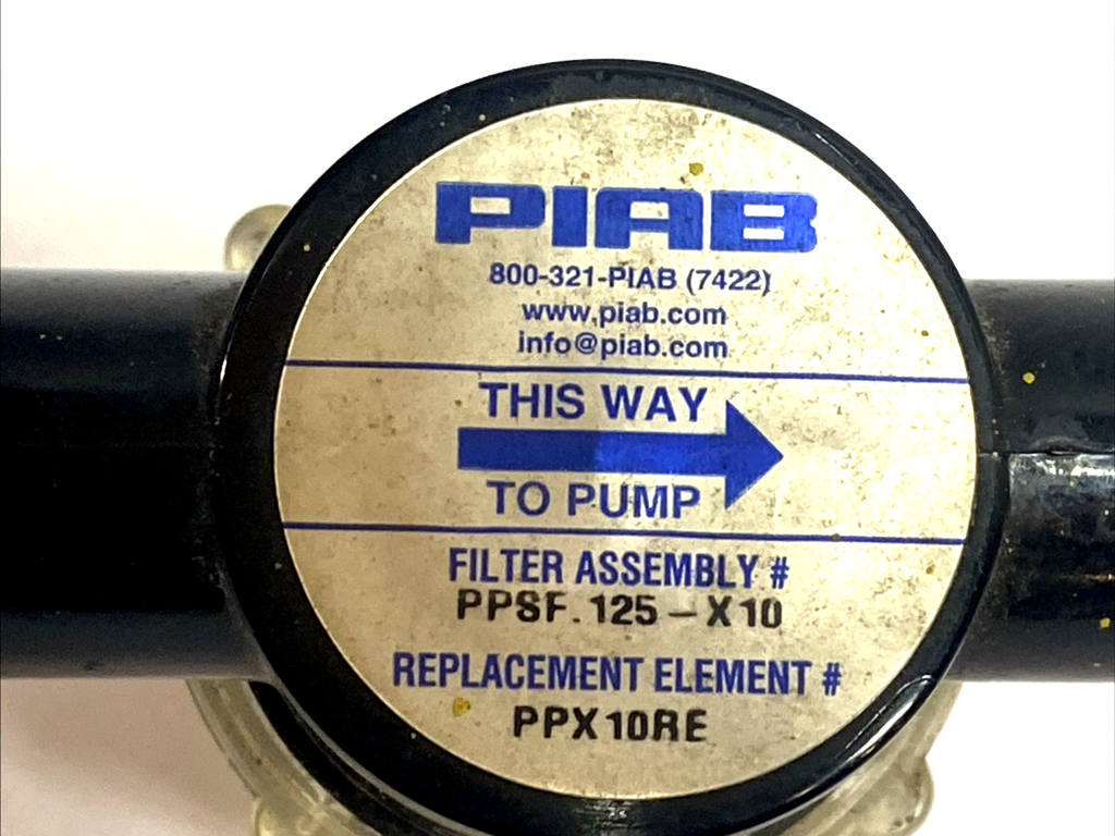 PPSF.125-X10 | Piab Vacuum Filter 1/8" NPT 10µm Inline Plastic Housing - Used