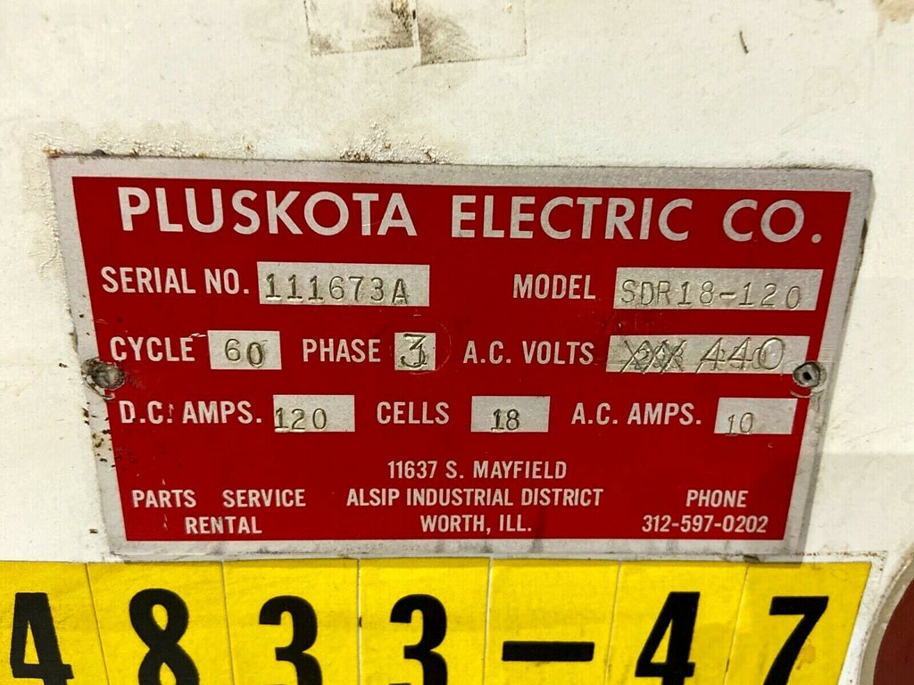 Pluskota SDR18-120 Lift Truck Battery Charger 18 Cell 3 PH 440 VAC