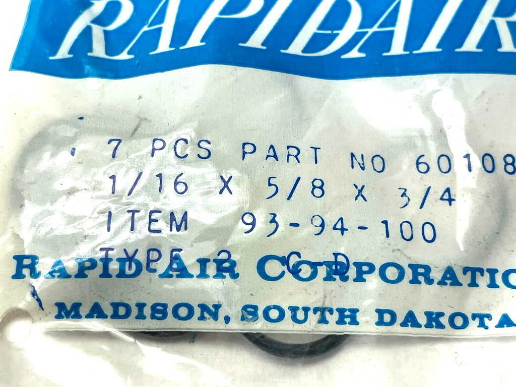 Rapid Air 60108016 O-Ring 1/16" x 5/8" x 3/4" PKG OF 7 - New