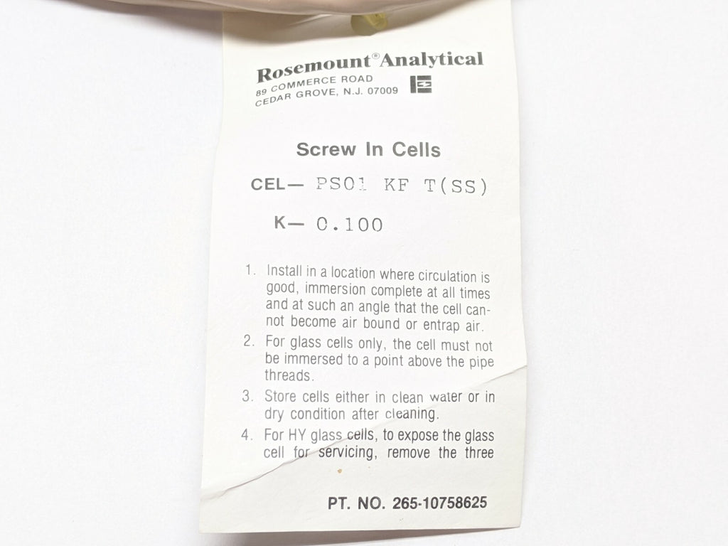 Rosemount CEL- PS01 KF T(SS) 265-10758625 Screw In Cells