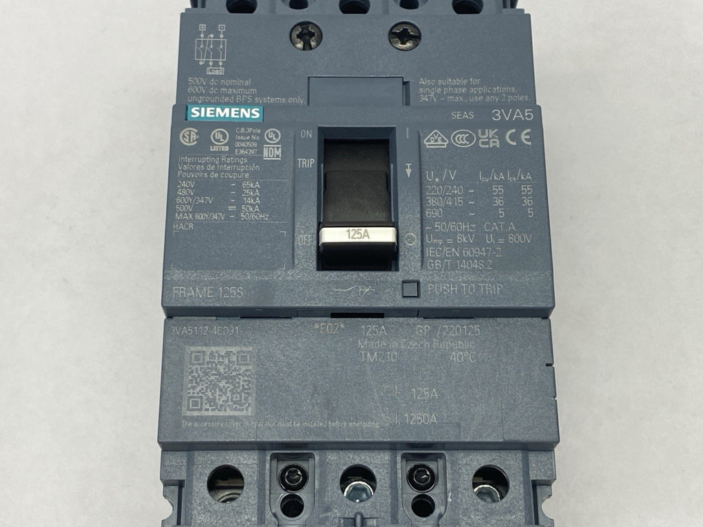 Siemens 3VA5112-4ED31-0AA0 Molded Case Circuit Breaker 3-Pole 125A 480V