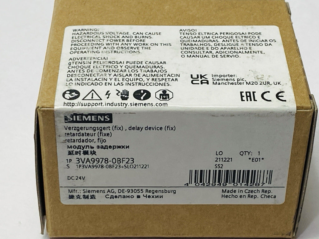 Siemens 3VA9978-0BF23 Fixed Time Delay Device 24VDC