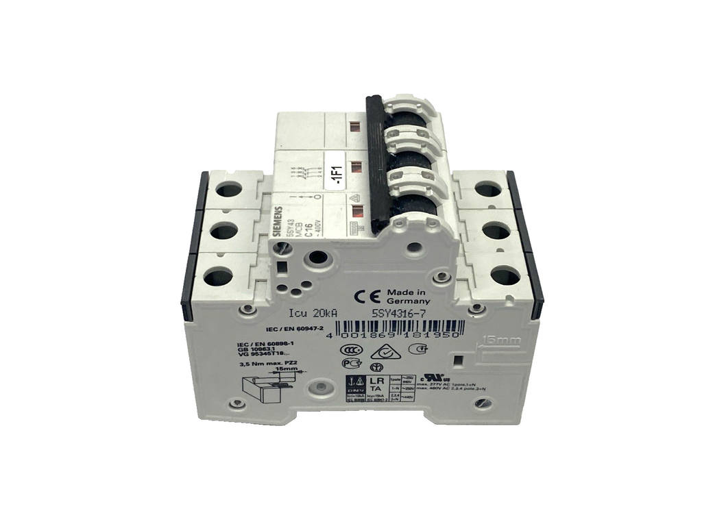 5SY4316-7 | Siemens Miniature Circuit Breaker 400V 10kA, 3P 16A - Used