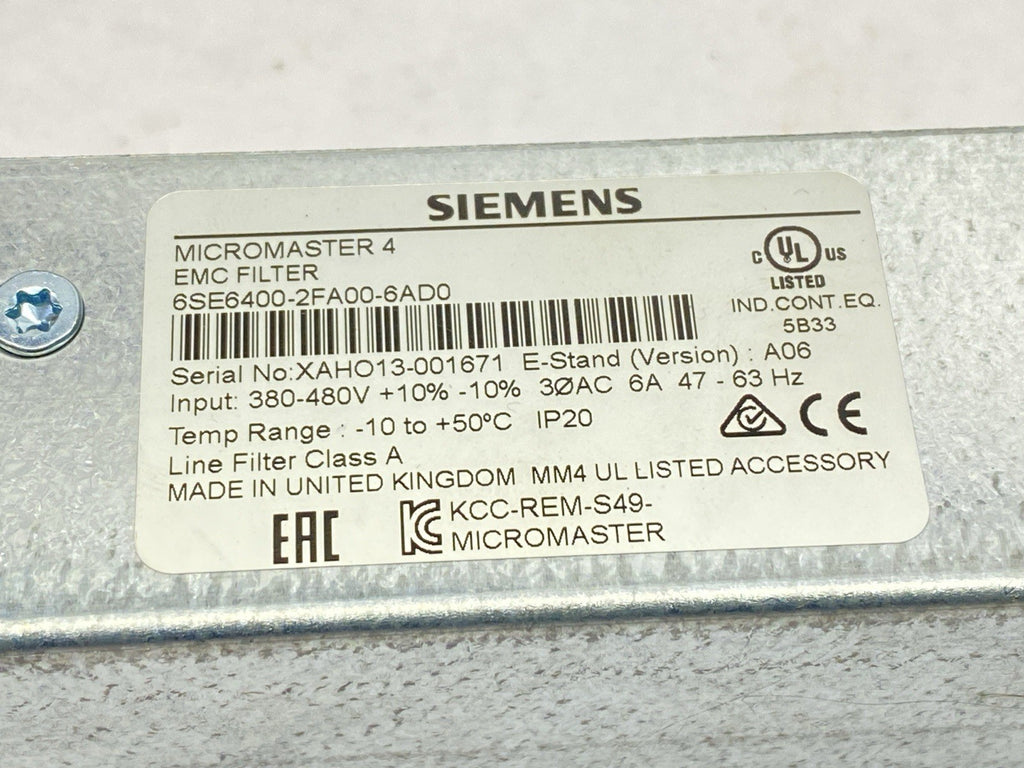 6SE6400-2FA00-6AD0 | Siemens MicroMaster 4 EMC Filter 3-Phase 6A 380-480V - Used