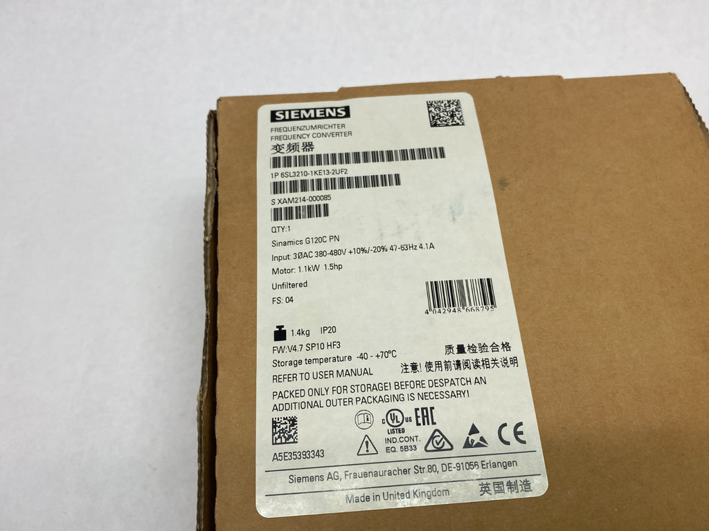 6SL3210-1KE13-2UF2 | Siemens SINAMICS G120C Compact Converter PN 1,1KW UNFIL - New – Open box