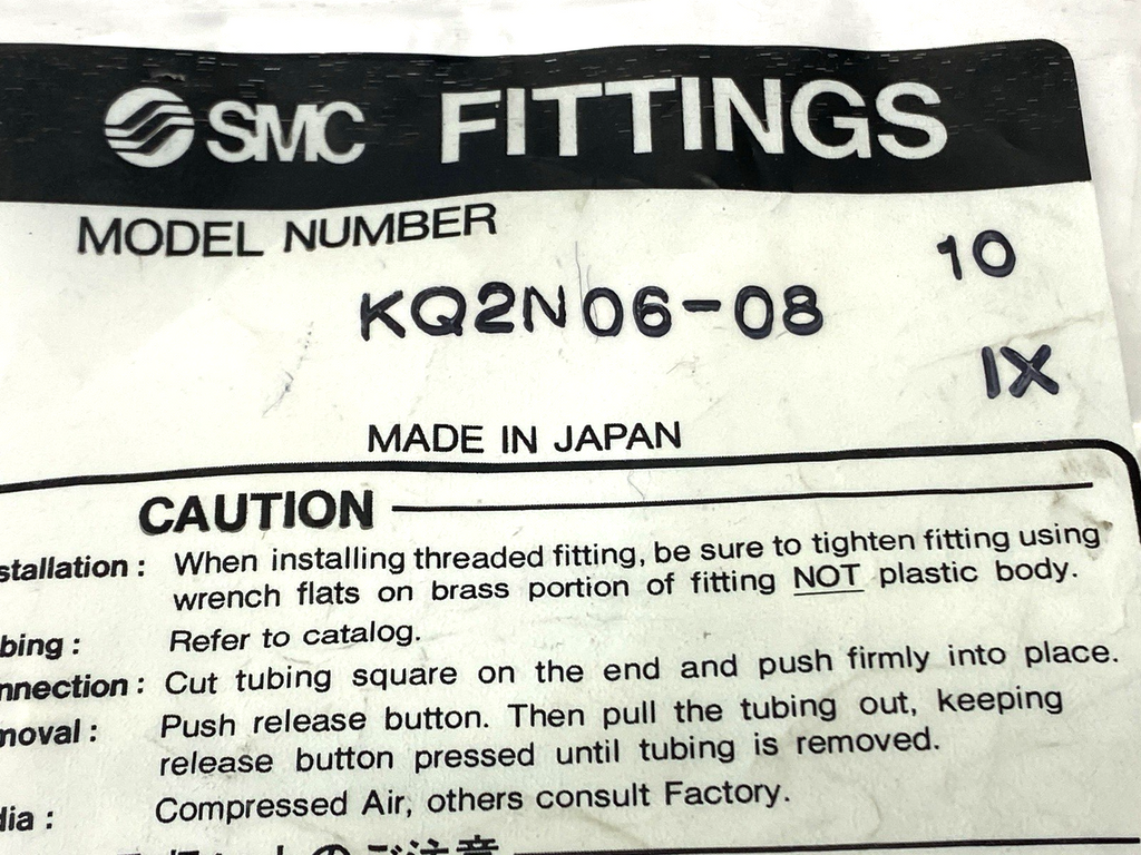 SMC KQ2N06-08 One-Touch Push to Connect Male Adaptor 6mm to 8mm PACKAGE OF 10