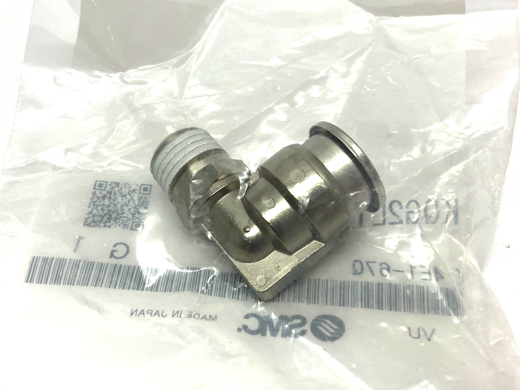 SMC KQG2L13-N02S Elbow Fitting 90-Degree 1/4" NPT Male to 1/2" Tube OD