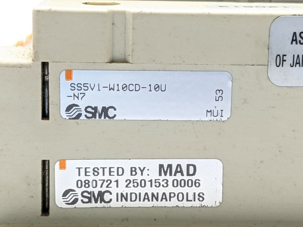 SMC SS5V1-W10CD-10U-N7 Manifold w/ 10x SV1100-5FU Solenoids