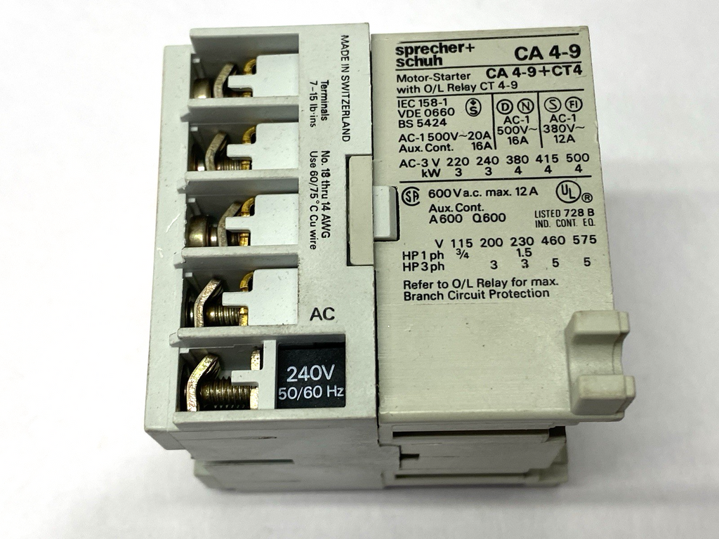 Sprecher+Schuh CA4-9-10-240-N0 Miniature Contactor 3-Phase 240V