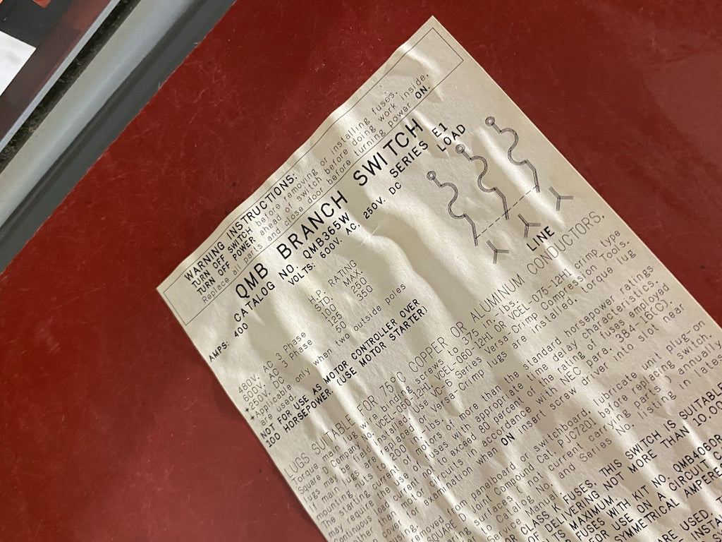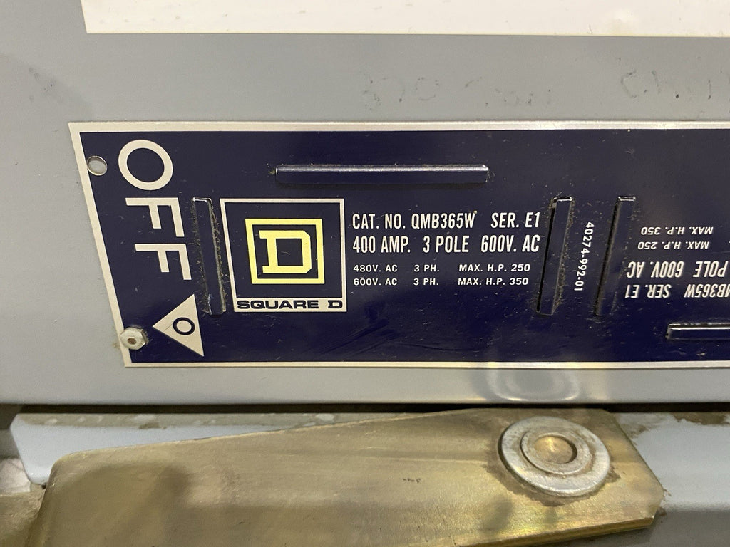 Square D QMB365W Ser. E1 Fusible Panelboard Switch Unit 400A 3-Pole NO FUSES