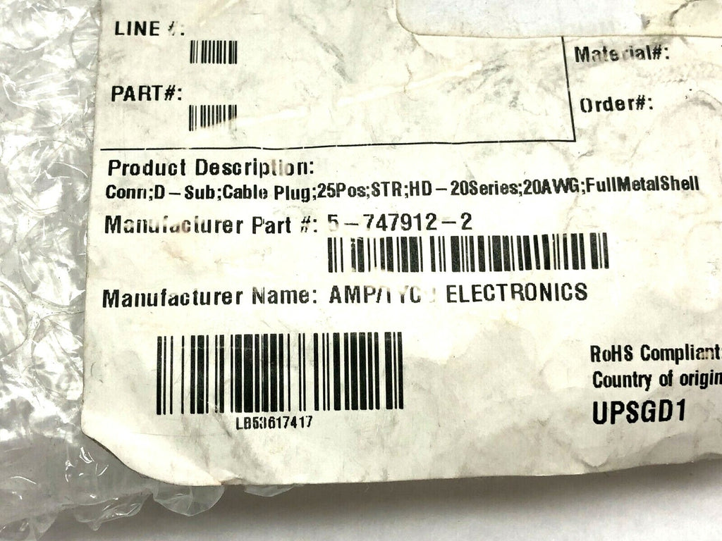 5-747912-4 | TE Connectivity 25 Position D-Sub Plug Male Pins Connector LOT OF 20 - New – Open box