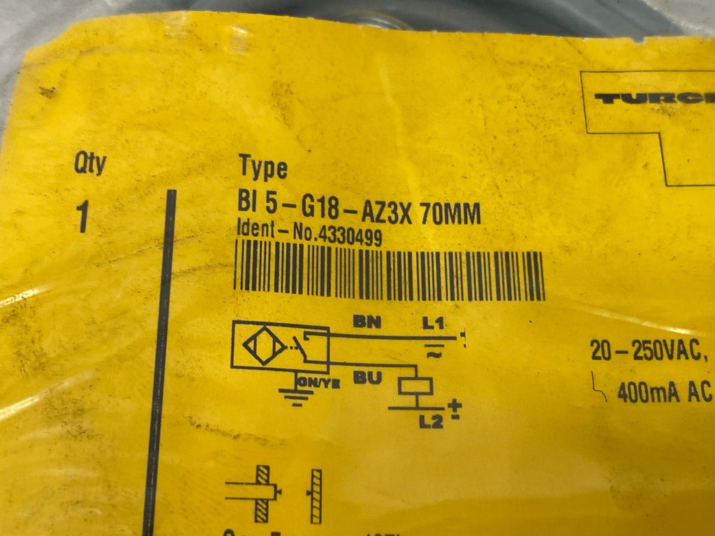 Turck BI 5-G18-AZ3X 70MM Inductive Proximity Sensor 5mm Sn 4330499