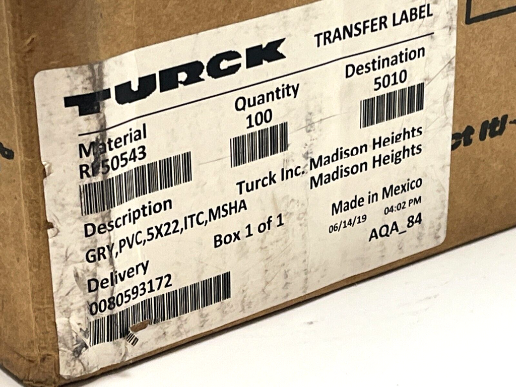 Turck GRY,PVC,5X22,ITC,MSHA Cable 0.107lb/Meter 8lb Remaining RF50543
