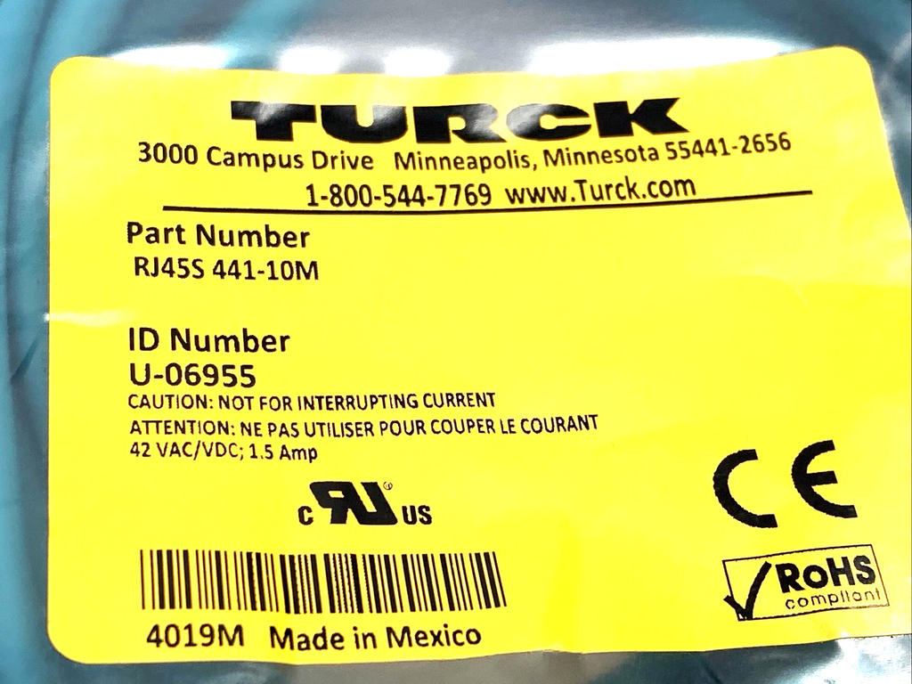 RJ45S 441-10M | Turck Industrial Ethernet Cable Male RJ45 10m U-06955- New
