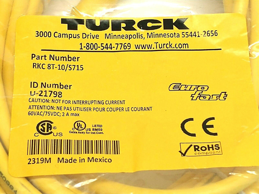 Turck RKC 8T-10/S715 Female M12 Connector Actuator And Sensor Cordset U-21798
