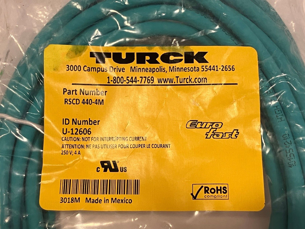Turck RSCD 440-4M Eurofast Cordset M12, 4 Wire Teal U-12606