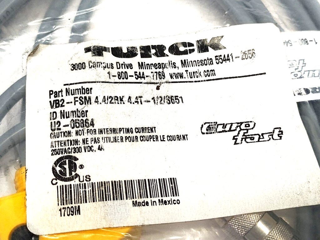 Turck VB2-FSM 4.4/2RK 4.4T-1/2/S651 2-Branch Splitter Cable M12 4-Pin U2-05864