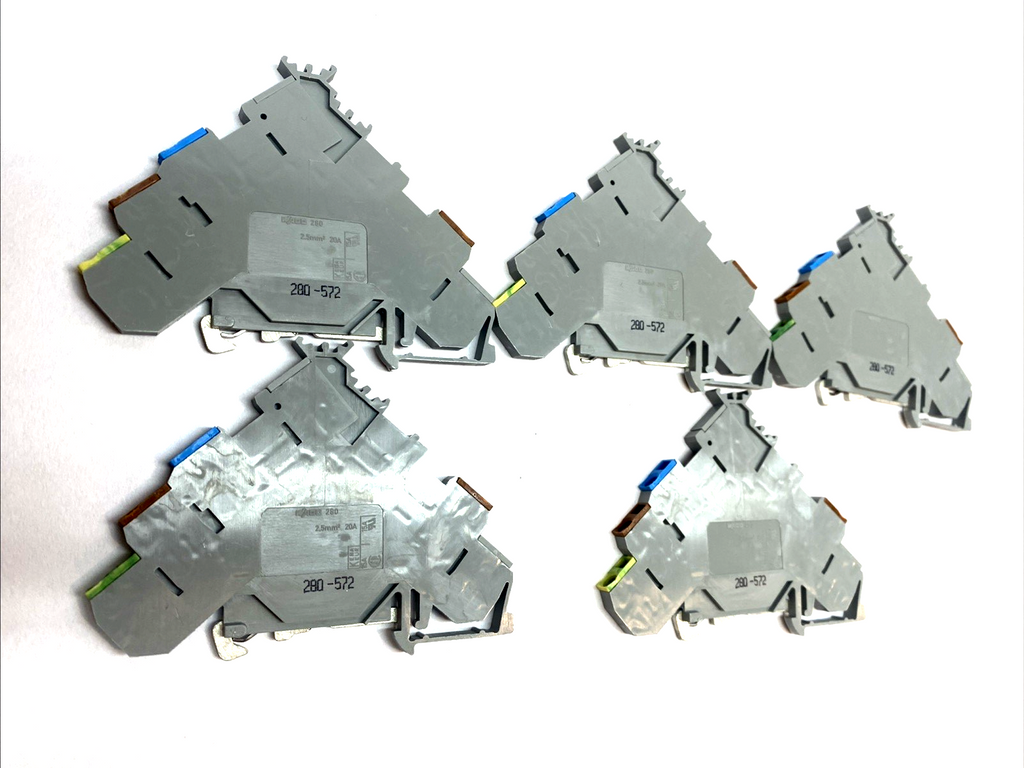 WAGO 280-572 3‑Conductor Actuator Supply Terminal Block DIN‑Rail Gray LOT OF 5 - Used