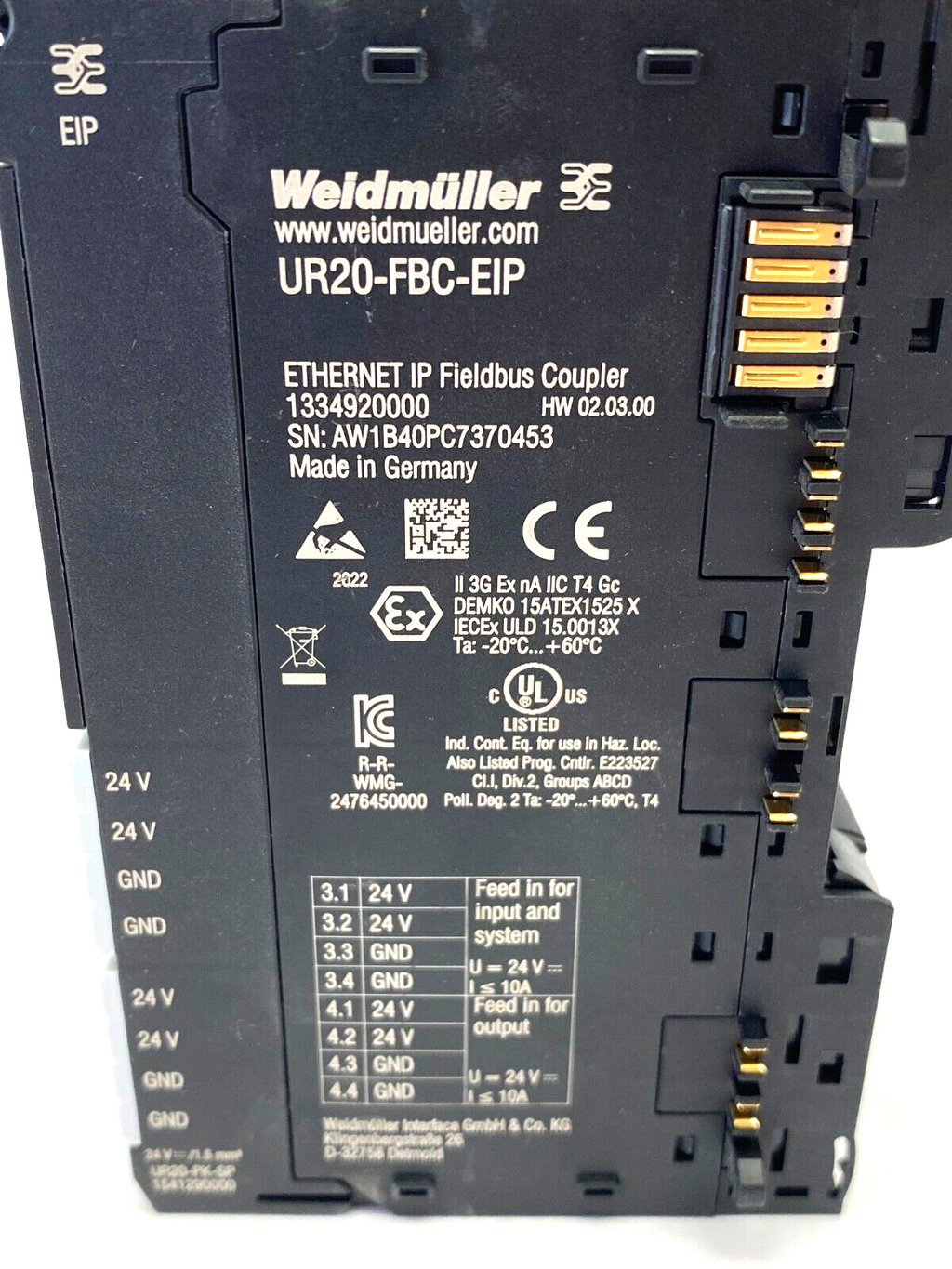 Weidmüller 1334920000 Remote I/O Fieldbus Coupler UR20-FBC-EIP NO END PLATE