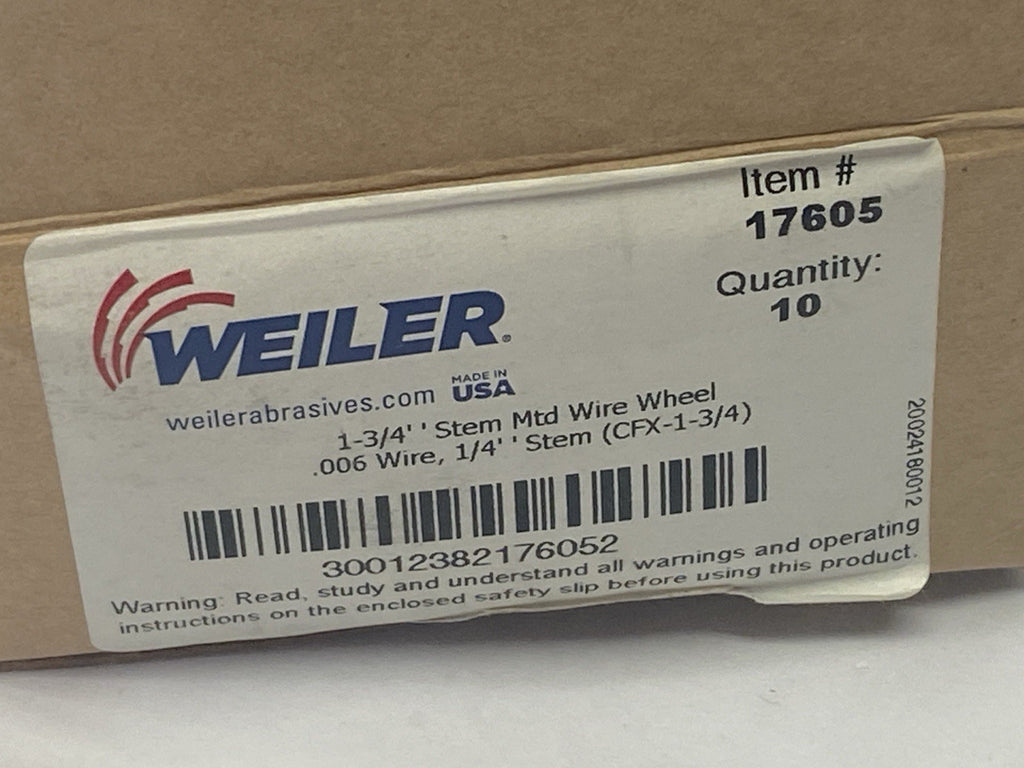 Weiler 17605 Stem-Mounted Crimped Wire Wheel 1.75" Wide 0.25" Stem LOT OF 10