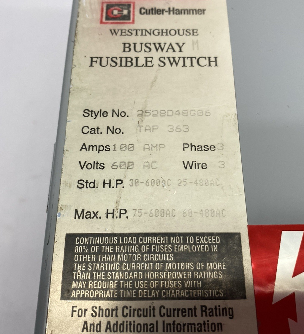 2528D48G06 | Westinghouse Cutler-Hammer Fusible Busway Switch 3-Wire 3-Phase - For parts or not working