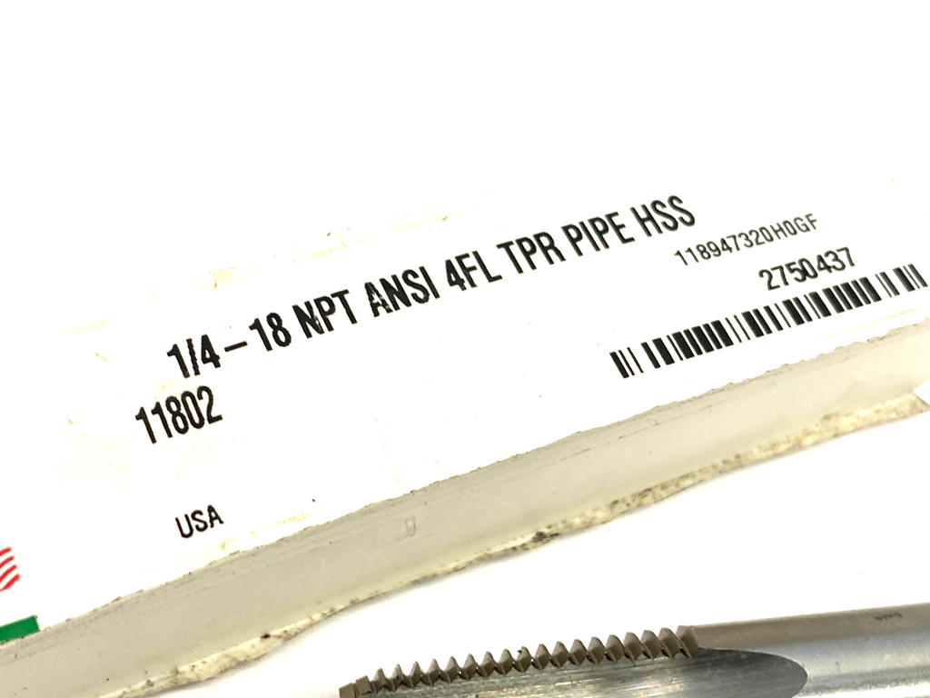 Model: Standard Chamfer Pipe Tap 1/4 - 18 NPT ANSI 4FL TPR HSS