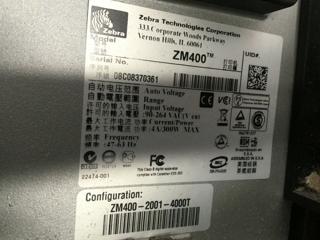 Zebra ZM400-2001-4000T Thermal Label Printer ZM400 - A